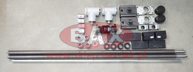 zestaw zawiera pokrywka łożyska- szt 2 nakrętka osiowa – szt 2 łożyska - szt 4 pierścień uszczel. - szt 2 obudowa łożyska - szt 2 obudowa nakrętki - szt 2 ślizg obudowy - szt 4 nakrętka nośna - szt 2 nakrętka kontrolna - szt 2 podpora pokładu - szt 2 nakrętka - szt 2 podkładka - szt 2 śruba podn.- szt 2 przekł. kątowa lewa - szt 1 przekł. kątowa prawa - szt 1 sprzęgiełko (Rotex) 30/30 - szt 2 sprzęgiełko (Rotex) 25/30 - szt 2 silnik hydr 2 wałkowy - szt 1 wałek łączący 30mm l=2042mm - szt 1
