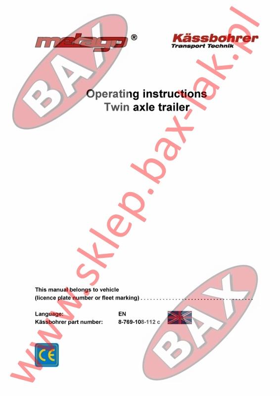 INSTRUKCJA OBSŁUGI PRZYCZEPY METAGO - ANGIELSKA