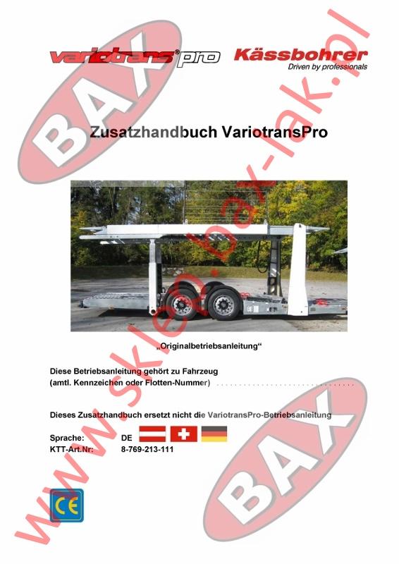 DODATKOWA INSTRUKCJA OBSŁUGI PRZYCZEPY VARIOTRANS PRO - NIEMIECKA
