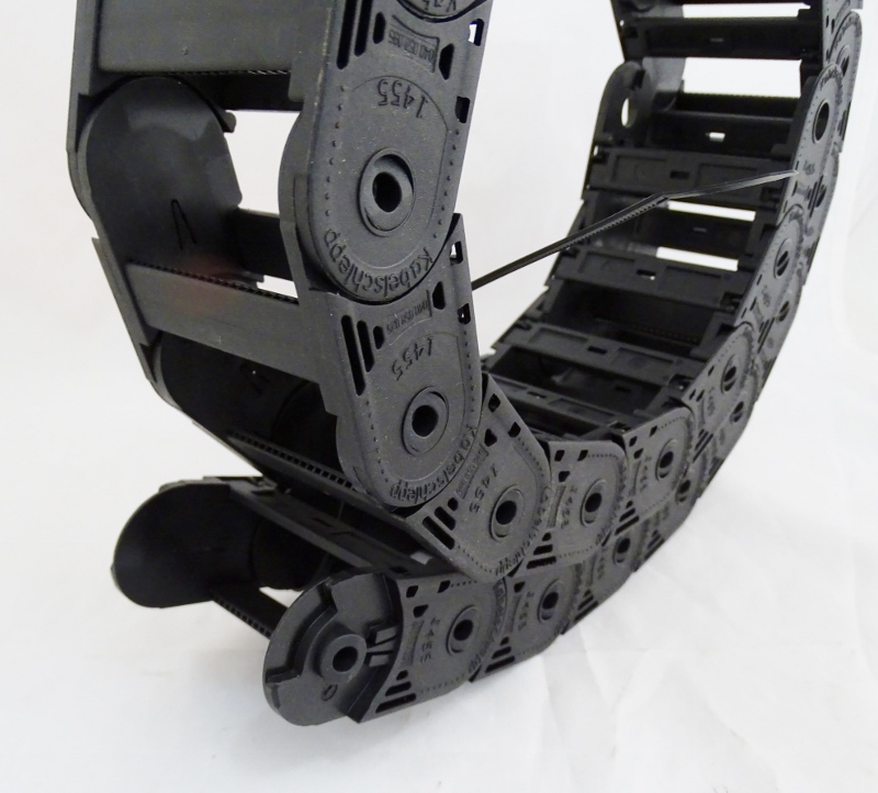 A09071164, Kabelschlepp 0455.040.058.095 WYMIARY BxHxL zew. 76x36x1000mm wew. 58x26x1000mm 22 OGNIWA = 1000mm ŁAŃCUCH PROWADZĄCY DO HYDRAULIKI I ELEKTRYKI GÓRNEGO POKŁADU K2 W PRZYCZEPIE EUROLOHR łańcuch montowany w pionie na przednim prawym słupie przyczepy, długość 1900mm (39 ogniw)